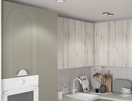 Главная изюминка Арко Эко — арочная фрезеровка фасадов. Она навеяна архитектурой Древнего Рима: торжественные базилики, величественные триумфальные арки, монументальные храмы. Здесь история встречается с современностью — рельеф фасадов не просто украшает, а формирует узнаваемый характер кухни вне времени.