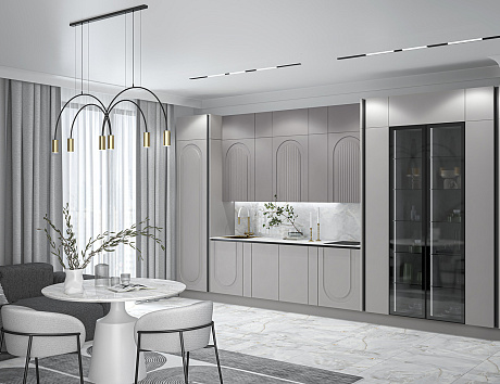 Кухня Арко Неоклассика в серой палитре — это гимн архитектурной гармонии, тишине и глубине. Каждый ее элемент дышит историей, но звучит современно. Это не просто мебель — это интерьерная доминанта с характером: сдержанным, но выразительным.