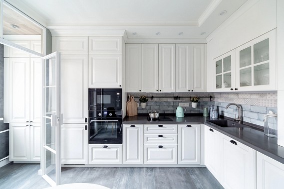 Преимущества белой кухни в сочетании с деревом