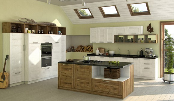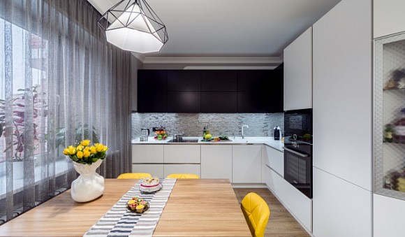 Если монохромные версии кажутся вам слишком скучными, используйте кухни на заказ с бежевыми вставками. Два светлых оттенка гармонично дополнят друг друга, а интерьер будет выглядеть более эффектно.