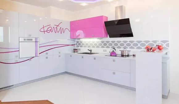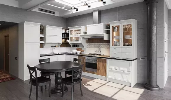 • Широкий ассортимент кухонной мебели. Производители выпускают кухни белого цвета разной формы.