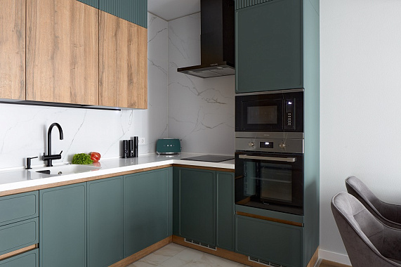 В таких случаях приходится адаптировать параметры кухонного гарнитура. Можно изменить высоту напольных кухонных шкафов, глубину фасадов для кухни, а также варьировать длину кухни в зависимости от особенностей помещения. Именно так рождаются проекты, где учитываются привычки и образ жизни семьи, а не только средние размеры кухни.
