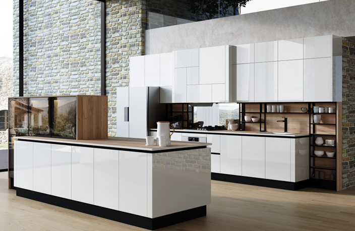 Чтобы дополнительно усилить этот эффект, можно выбрать гарнитур с покрытием из ультраглянцевой эмали. Такие фасады отражают свет, создавая ощущение дополнительного пространства.