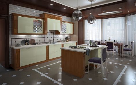 В части форм ограничений просто не существует, в чем можно убедиться, выбирая гарнитур для кухни из массива в магазинах Москвы и регионов. Универсально удачными для кухонь любых размеров остаются прямые и линейные гарнитуры. Если же ограничений в площади не существует, не менее эффектно смотрятся П-образные и островные кухни, а также мебель с барной стойкой.