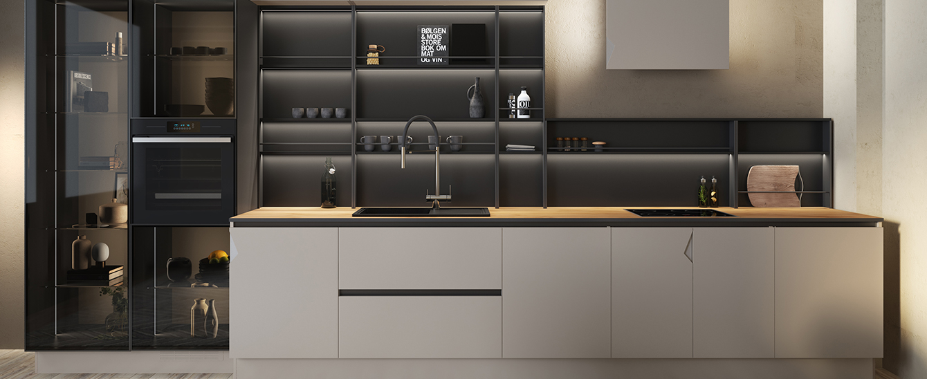 В фокусе — современные и выносливые материалы: МДФ с глубокой эмалью, бархатистые суперматовые поверхности, экомембрана, стекло и керамогранит. Они спокойно выдерживают влагу, горячий пар и ежедневное активное использование, сохраняя безупречный вид годами. В каталогах бренда «Кухонный Двор» легко найти модель с трендовым фасадом под любой проект — от лаконичного минимализма с гладкими линиями до эффектных решений с выразительной текстурой камня или бетона, которые всегда играют роль акцентных деталей.