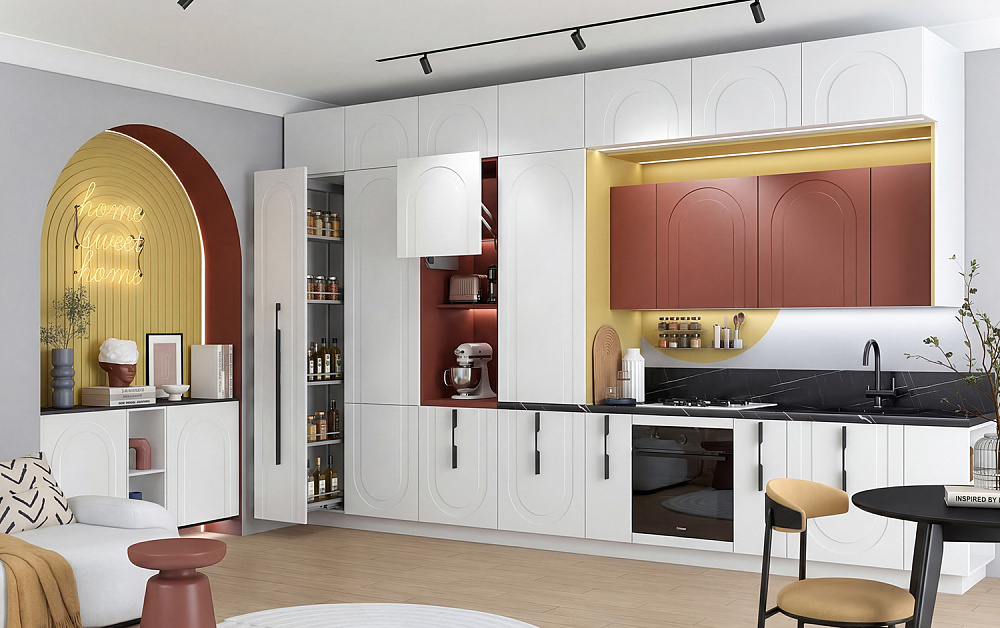 Интеграция сенсорных смесителей, подсветки с датчиками движения и систем «умный дом» превращает кухню в пространство, где техника словно предугадывает ваши шаги. Быт становится проще, ресурсы расходуются экономно, а каждое привычное действие — быстрее и удобнее. Такая система делает современный кухонный интерьер не только стильным, но и умным, комфортным и готовым подстраиваться под ваши привычки.