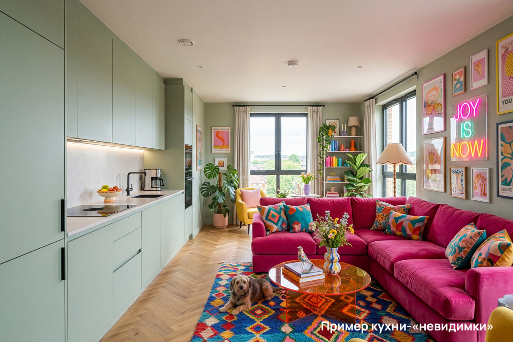 Смелое смешение эпох превращает кухню в настоящую галерею стиля, где каждая деталь рассказывает свою историю. Винтажные элементы, словно ноты из прошлого, добавляют характер и эмоциональный оттенок, превращая дизайн большой кухни гостиной в пространство, которое невозможно забыть. Такой интерьер живёт своей жизнью, удивляет гостей и отражает уникальность хозяев, создавая гармонию между прошлым и современностью.