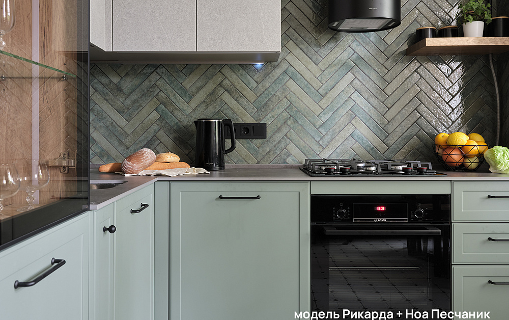 Рифлёные поверхности, бархатистое покрытие Мягкое прикосновение (Soft Touch) и тепло натурального дерева добавляют интерьеру глубины и тактильности. К таким материалам хочется прикасаться — они делают пространство живым, наполненным ощущениями и комфортом. Именно за счёт этих деталей кухня превращается из функциональной зоны в по-настоящему уютное место притяжения для всей семьи.
