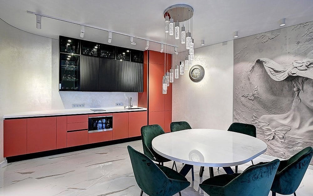Готовые решения – не самый удачный вариант, особенно для нестандартных помещений. Гораздо практичнее заказать кухню от производителя. В этом случае планировка и дизайн будут разрабатываться с учетом архитектурных особенностей пространства и пожеланий клиента.