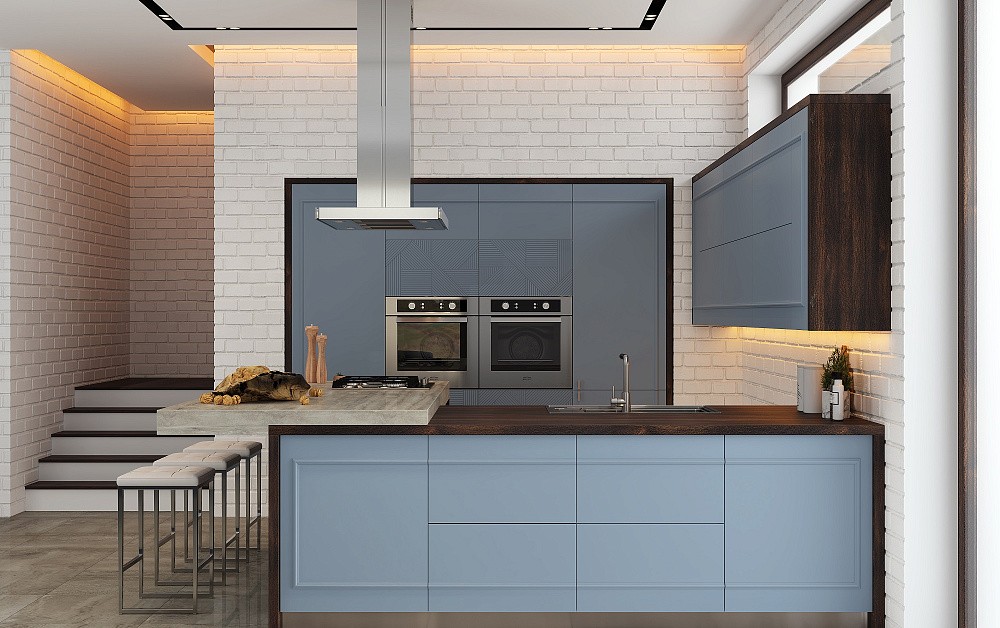 В больших помещениях кухня и гостиная часто оказываются совмещенными. Визуально отделить одну зону от другой можно с помощью островной конструкции, барной стойки или стеллажа. Зонирование с помощью кухни на заказ от производителя технически выполнить гораздо проще. Дело в том, что комплект будет изготовлен с учетом архитектуры пространства.