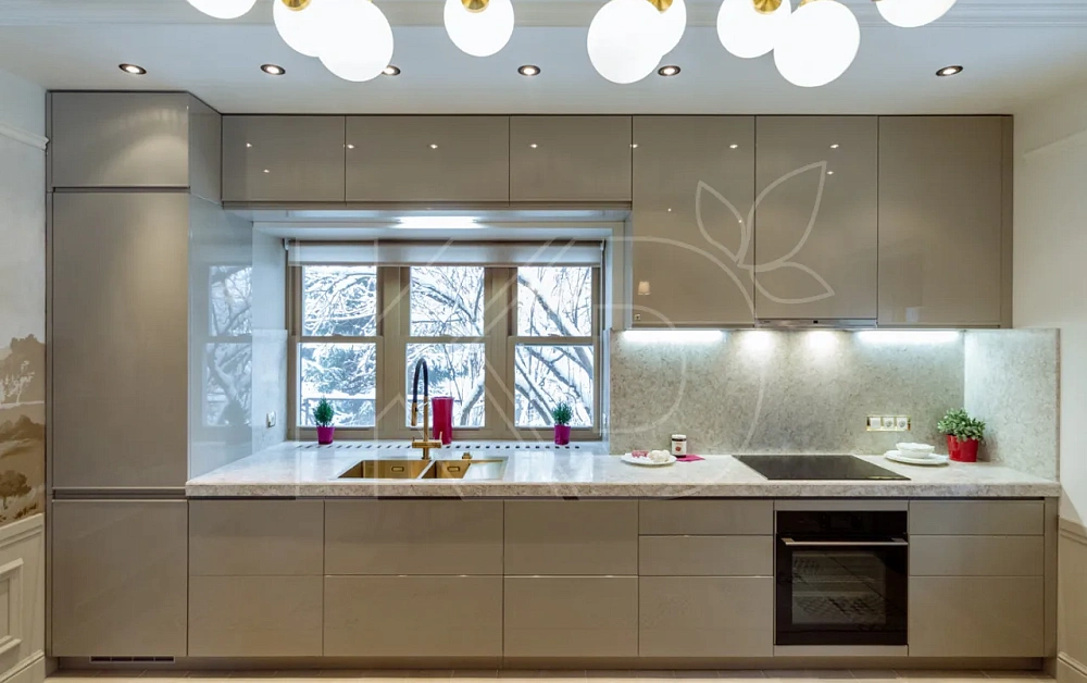 При необходимости вы можете заказать гарнитур со встраиваемой техникой. Такой вариант позволит рационально использовать каждый сантиметр пространства, избегая любых недочетов, связанных с размещением бытовых приборов.