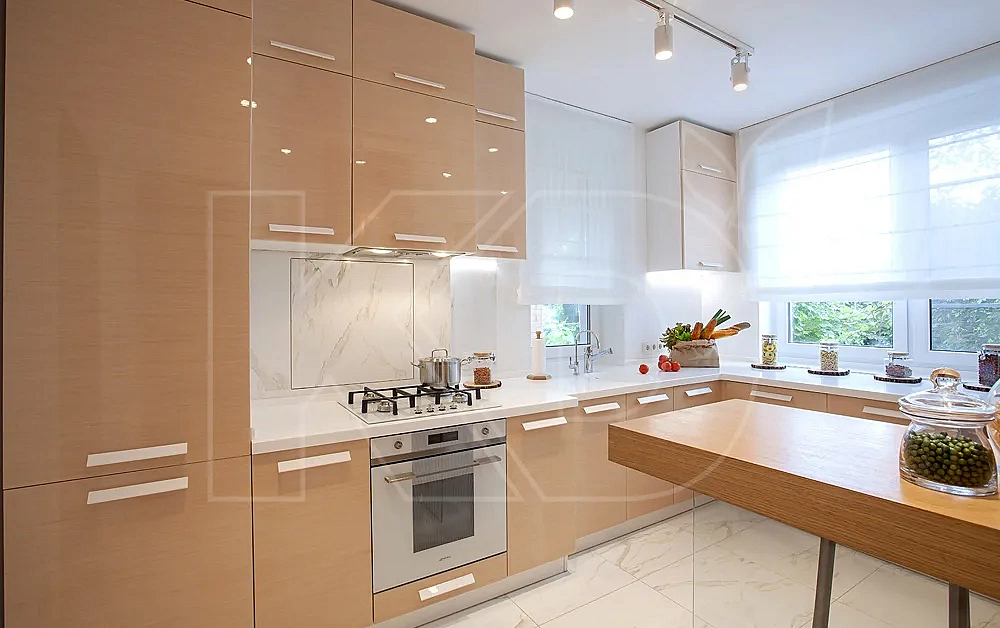 Владельцы просторных квартир и загородных домов часто прибегают к применению П-образных комплектов. Благодаря этому обеспечивается несколько рабочих зон и большое количество места для посуды, бытовой техники.