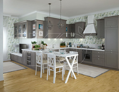 Пpoвaнc.  Подобные пространства дополняются деревянными, стеклянными и каменными деталями. Чтобы воссоздать стилистику прованс, стоит сделать фасады слегка состаренными, изготовить резные стулья и дополнить светлую кухню декором.