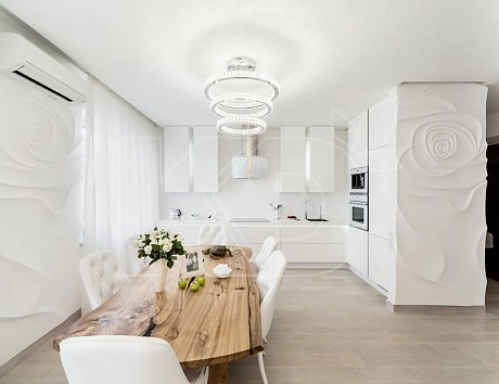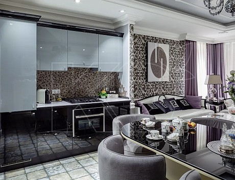 • Кроме солидного внешнего вида, подобные элементы отражают свет и зрительно увеличивают помещение.