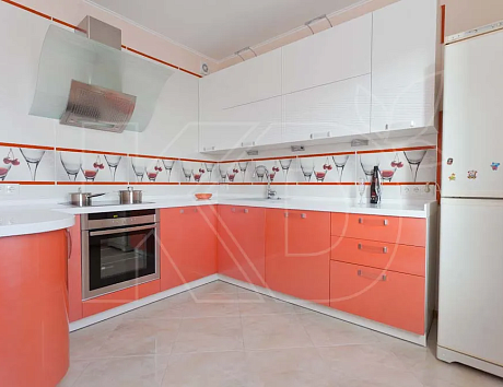 Версия «Фаворит 3 верхний глянец» особенно приглянется тем, кто ищет современное решение без активного декора. Здесь фасады изготовлены из МДФ, который покрыт эмалью «высокий глянец» по многоступенчатой методике StrongCoat. Благодаря ей можно получить долговечную поверхность.