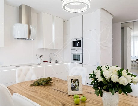 Особый шик – глянцевое декорирование фасадов или других элементов кухни. Это когда свет отражают лишь отдельные элементы. Обычно их изготавливают из самых современных материалов, например, из лакированного МДФ премиум-класса. Исходя из этого можно выделить следующие преимущества решения: