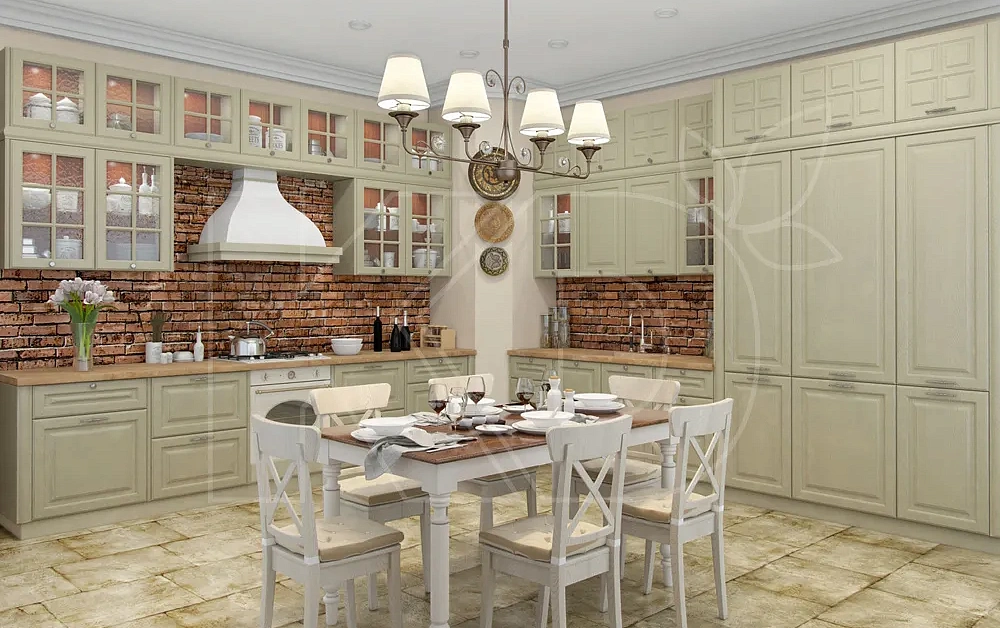 Заказать кухню в стиле прованс можно для помещения любого размера. В небольшое пространство легко встроится лаконичная линейная версия с самыми светлыми поверхностями и минимальным количеством декора. Для большой площади можно подобрать вариант, оформленный резьбой, коваными деталями, растительными узорами.