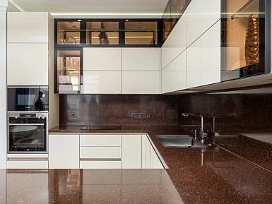 • Использование полезной площади с максимальной эффективностью. Например, соединение подоконника со столешницей.