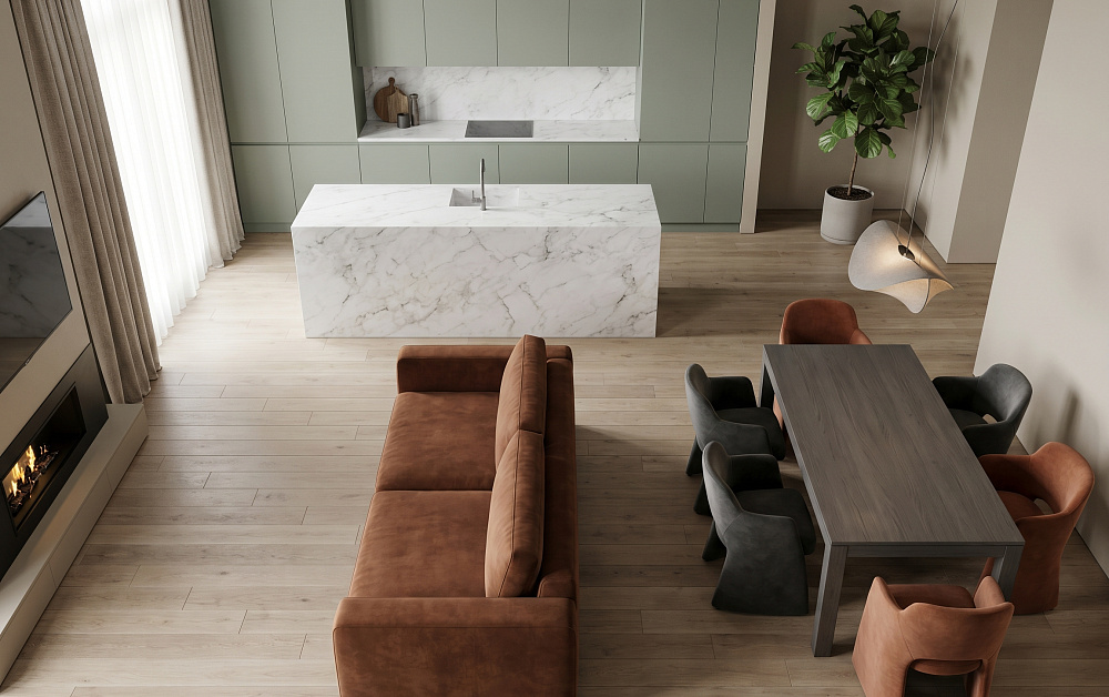 Современные квартиры и дома всё чаще — с открытой планировкой. Мы так много времени проводим на работе, что появился сильный запрос на объединенную в единое пространство кухню и гостиную. Зачем? Чтобы мы могли не просто готовить после работы, а готовить + наверстывать в общении с любимыми. Таким образом, кухня-гостиная это не просто сиюминутный тренд, который станет неактуальным через 10-15 лет, а жизненно необходимое многофункциональное решение.