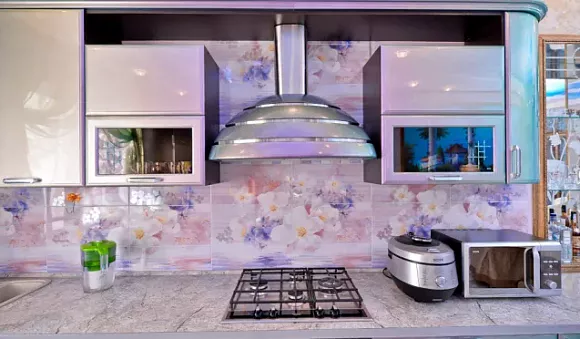 В том случае, если вы решили оформить кухню в фиолетовых тонах хамелеона, стоит обратить внимание на сиреневые и оранжевые оттенки в оформлении других элементов помещения. Некоторые детали должны быть светлыми. Например, подвесные потолки можно сделать ярко-белыми, добавить вытяжку или оформить ручки в светлых тонах. Также не рекомендуется оформлять пол и стены в темных тонах, так как это визуально сделает кухню менее просторной.