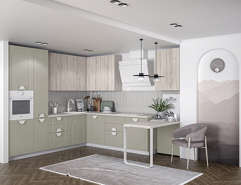 Арочная фрезеровка фасадов — не просто декор, а стилистический код, в котором зашифрованы вечная красота и гармония. Изгибы создают рельеф, в котором играет свет, а тени оживляют поверхность, превращая кухню в часть живого пространства.