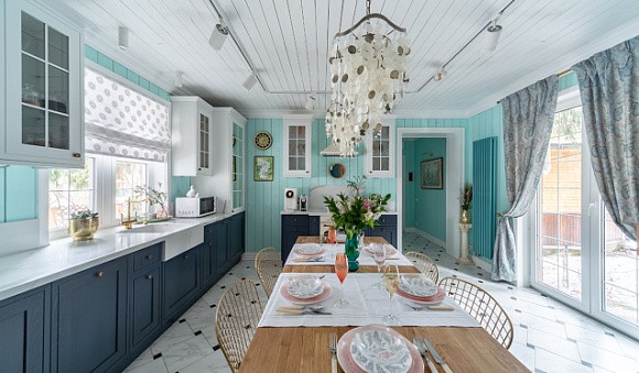 Хороший вариант – кухни кантри. Такое решение идеально подходит для частных домов, располагающихся на лоне природы. В рамках этого направления кухонный гарнитур можно изготовить в коричневом и золотистом оттенках.