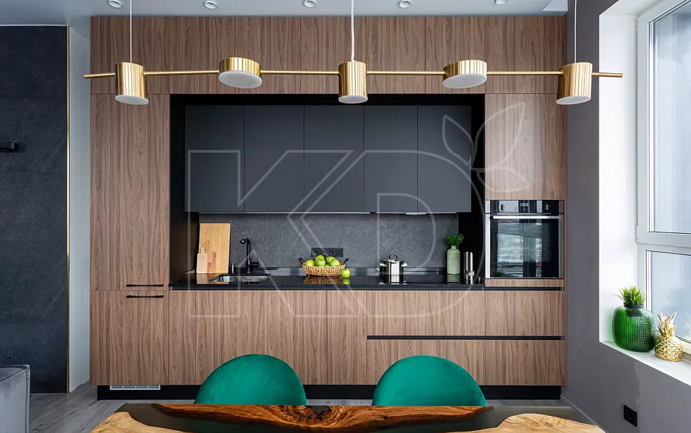 Для просторной квартиры-студии идеальным решением станет островная модель кухни. Гарнитур с такой планировкой подходит для зонирования помещения, потому что остров способен визуально отделить кухню от остального пространства.