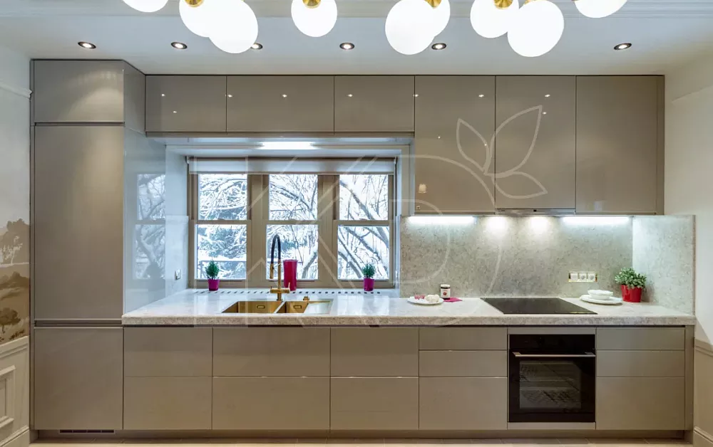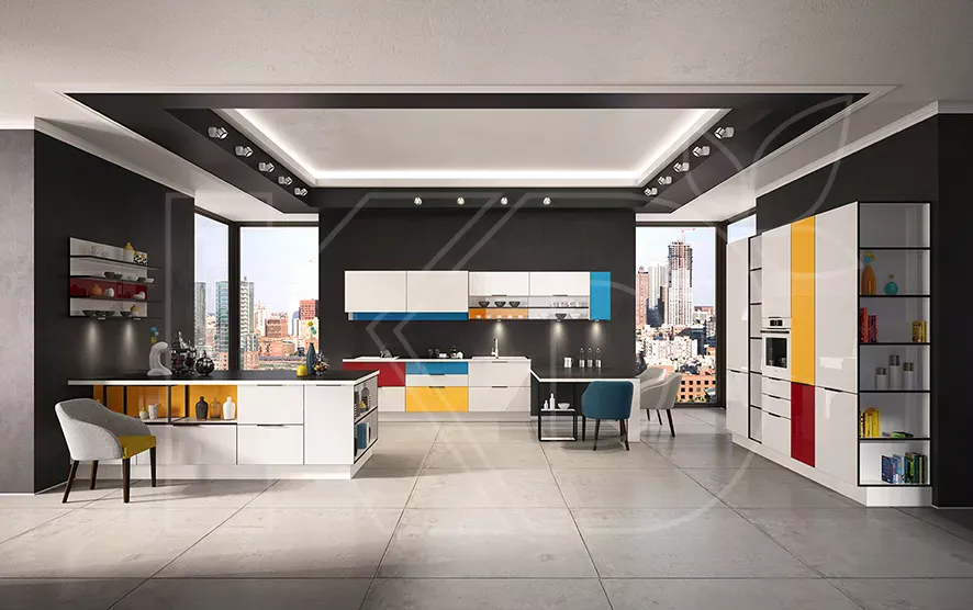 Выбирая расцветку П-образного комплекта, учитывайте особенности пространства. Слишком темные поверхности при плохом дневном освещении могут создать гнетущее ощущение, поэтому верхние модули лучше сделать белыми или бежевыми.