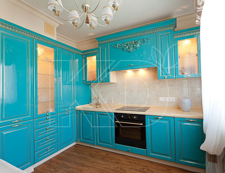 Темные оттенки синего наиболее уместны в стилях хай-тек и модернизм. Присутствие хромированных элементов и глянцевых поверхностей раскрывают возможности цвета, подчеркивают его глубину и выразительность. Прекрасно будет смотреться классический гарнитур с фасадами лазурного или кобальтового оттенка. Презентабельности такой мебели добавляют позолоченные ручки, резьба, рамки. Нельзя забывать о том, насколько выразительно выглядят синие кухни в интерьере, оформленном в стиле прованс. При этом мебель лучше выбрать в бирюзовых или васильковых тонах. Растения на подоконниках, льняные шторы и скатерти подчеркнут нежность и красоту этих оттенков.