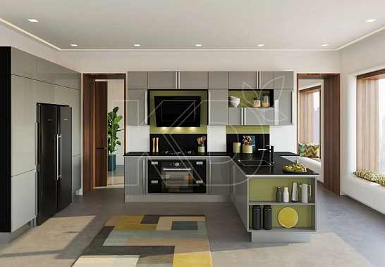 • Удобно в использовании. Благодаря такому расположению мебели и ее внутреннему наполнению нужные предметы всегда были под рукой, что делает процесс приготовления пищи комфортным.