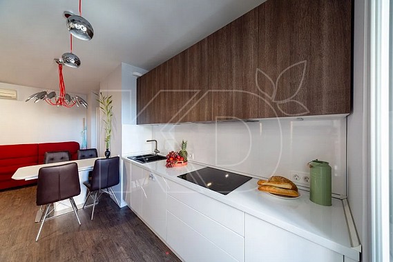 • Кухню с полуостровом. Подобная планировка оптимальна для просторных помещений, где полуостров заменит обеденный стол или барную стойку.