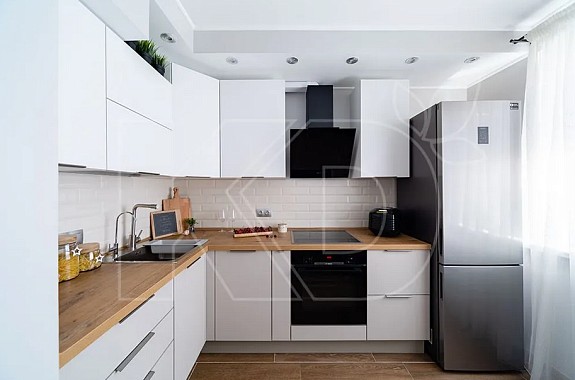 Г-образные гарнитуры состоят из модулей, расположенных вдоль перпендикулярных друг к другу стен и задействующих глухой угол. Современная фурнитура позволяет с легкостью использовать данное ранее труднодоступное пространство, освобождая дополнительные рабочие поверхности. Количество модулей подбирается индивидуально в зависимости от размеров кухни. Среди достоинств угловых мини кухонь, цена выступает лишь одним из плюсов. Также среди преимуществ можно отметить: