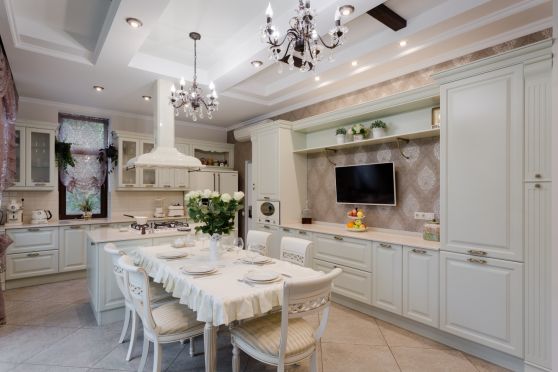 На сегодняшний день популярностью пользуется и белая кухня. Обычно такой вариант выбирают, когда нужно визуально расширить помещение. Каждый человек отождествляет белый цвет с чистотой и легкостью, поэтому оформленная в этом цвете кухня станет настоящим источником вдохновения.