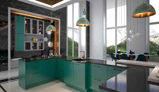 Особенности производства зеленых кухонных гарнитуров