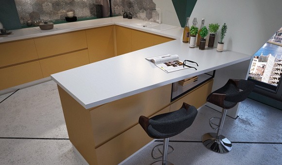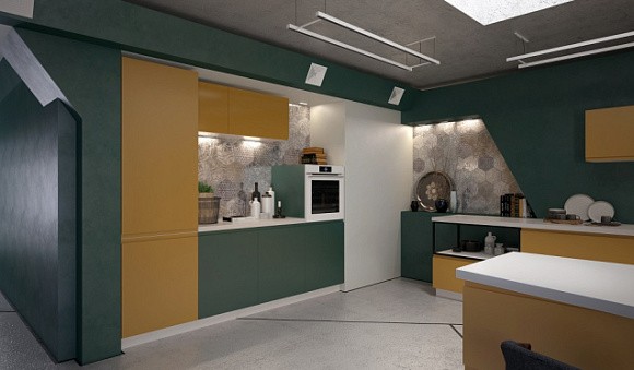 Широкий ассортимент. Производители выпускают разные кухни в желтых цветах – лофт, кантри, неоклассика, модерн, сканди, хай-тек, арт-деко.