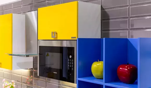 Кухонный набор мебели желтого цвета будет хорошо смотреться в сочетании с элементами другого цвета. Например, для просторного помещения подойдет модель с красными вставками. Подобный дизайн ассоциируется с восточным стилем, создает особое настроение.