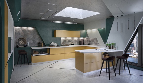 Из каких материалов выполняют кухни в желтых тонах?