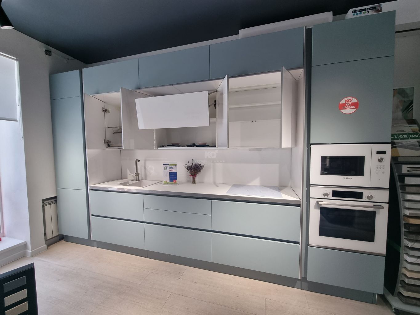 В стоимость образца входит: мебель, мойка, смеситель.